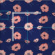 Beautiful patterned fabric of coral pink anemone flowers on navy blue