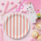 Coral and white candy stripes paper plate