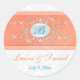 Coral, Aqua, and Grey 1.5" Round Wedding Sticker