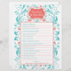 You can personalise the name on this coral orange and aqua blue floral personalised bridal shower "who knows the bride best" game. You can change the text using the personalise options. The colours on this bridal shower game are coral orange and aqua blue... perfect for a spring or summer wedding shower.