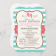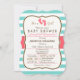 Coral, Aqua, & White Stripes Baby Shower Invitation