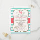 Coral, Aqua, & White Stripes Baby Shower Invitation Postcard