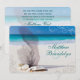 This romantic design features a photo of a white sand beach with the ocean in beautiful shades of blue. Coral is artfully arranged with seashells. Swirls are the inspired by the waves of the water. Personalise this invitation with the details of your upcoming wedding. These invitations are great for beach theme or destination weddings. The colour of the font can be changed by clicking on the Customise It button. The text and wording can also be changed.