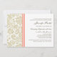 Custom Bat Mitzvah party invitations in elegant peach orange pink, champagne taupe sand tan brown and white classic floral damask pattern. Add your name and party details for a unique and stylish Bat Mitzvah party invitation.