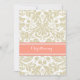 Coral Beige Damask Christening Invitation