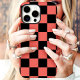 Make a bold statement with this Coral and Black Chequerboard Phone Case. This striking design features a vibrant coral and black chequerboard pattern that's both modern and eye-catching. Perfect for those who appreciate bold graphics, minimalist aesthetics, and a touch of retro flair. This case is sure to add a pop of personality to your everyday style.