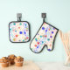 Coral Blue Aqua Modern Circles Dots Oven Mitt & Pot Holder Set