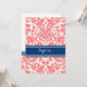 Coral Blue Damask Baptism Invitation