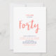 Coral & Blue Lettering Forty 40th Birthday Party Invitation