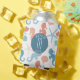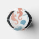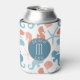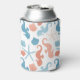 Tangerine coral and cerulean blue are the colours in this pretty nautical theme can cooler. Images of seahorses, seashells, and starfish make up the repeating pattern. At the centre front is a matching blue circle banner with your monogram in white. Above and below the monogram are custom text fields, which say "BEACH LIFE" in the example. Everything is placed on a white background.