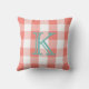 Coral Buffalo Check | Teal Monogram Plaid Cushion