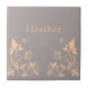 Sweet and dainty Butterfly Floral Tile with a muted dusty grey background and coral butterflies and floral vine embellishments. This elegant floral tile would complement any decor! Easy to customise, simply add the personalised text of your choosing in the text fields provided. Click on the "Customise It" button to find additional personalisation options.