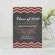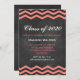 This trendy Graduation Invitation is on an illustrated chalkboard background and accented with coral chevrons.