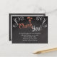 Fresh coral peach and white blackboard effect text with a slate grey background. Celebrate a ceremony by the seaside shore with this cool breezy palm tree and a sketched white chalk look. Nice rustic vintage feel at a beach wedding. Design Copyright © CustomInvitesOnline.com