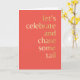 Faux gold gradient text that reads "let's celebrate and chase some tail ... cocktail." is fun and cheeky on a fresh coral red background. The editable message text inside lets you personalise this card for a more specific occasion.