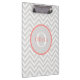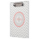 The Coral Chevron Monogram Clipboard features a design of a light grey chevron pattern with a circle emblem outlined in coral. Additional items available with this design as well. Please contact me directly for assistance with personalisation.
