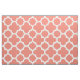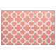 Coral quatrefoil fabric (Large pattern version, you can use the "Customise It" tab to easily change the scale of the pattern to suit your project). This versatile clover quatrefoil trellis pattern fabric is available as machine washable 56" wide combed cotton, 54" wide pima cotton, 58" wide cotton twill, 60" wide polyester poplin, 58" wide woven polyester or linen which has a width of 54 inches and is dry clean only. Available as swatches, fat quarters, or by the yard. Printed in the USA. A choice of perfect cloth fabrics in modern colours for home decor, upholstery, quilting, crafts, apparel, appliqué or other textile DIY projects.