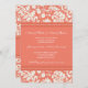 Engagement party invitations in elegant peach orange and cream off white classic floral damask pattern. Fully customisable with your engagement party details. Also available in a wide range of matching wedding products.