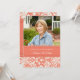 Custom photo 70th Birthday party invitations in elegant peach orange, cream and white classic floral damask vintage pattern. Add your name, photo, and party details for a unique and stylish birthday party invitation.