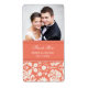 Coral Damask Photo Wedding Labels