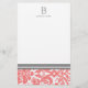 Pretty and elegant peach orange pink, charcoal grey and white chic vintage floral damask patterned custom monogrammed stationery for the bride and groom. Add your initial or name to create unique personalised wedding stationery.