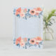 Design features a printed coloured floral element in shades of coral and dusty blue with peony rose floral blooms with calligraphy script or type writing. Gold geometric frame on some, mix and match collection piece. Great for your wedding celebrations!