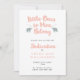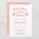 A cute typographical invitation for the dedication of your little girl featuring a line from the popular hymn Jesus Loves Me. The phrase"Little ones to Him belong" is written in coral peach brush lettering font, flanked by two grey elephants.