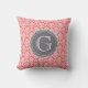 Coral Floral Damask Pattern Grey Monogram Cushion