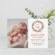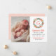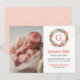Coral Floral Monogram Wreath Baby Girl Photo Birth Announcement