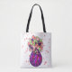 CORAL FLOWERS IN PURPLE VASE, Tote bag