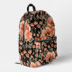 A large floral contemporary print with giant coral colour flowers and many small coral flowers. Leaves are silver sage and the background is chic black. Personalise. Seamless.