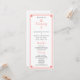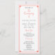 A coral frame minimalist wedding ceremony details card that you can make your own by using the "customise this template" option to enter your wedding ceremony information. Coral coloured script and grey typography on a white background. Script and text on a clean and simple white background on the reverse.