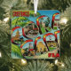 A wildly colourful vintage postcard for Coral Gables, Florida repurposed on an ornament.