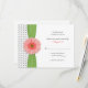 The text on this coral or peach gerbera daisy polka dot green ribbon wedding reply or RSVP card is fully customisable. To change it use the personalise option. For more extensive text changes, such as changes to the font, font colour, or text layout, use the customise option. Although this invitation is currently customised as a wedding reply card, it could also be used for other special occasions such as a wedding anniversary, a birthday party invitation, or a bridal shower. It could also be used as a reception, direction, and/or accommodation card. Really it's up to you. All you need to do is change the text.