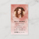 This is a very glamourous business card with imitation rose gold glitter and photo and a QR code.