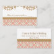 Elegant and beautiful french Moroccan tile inspired wedding table place cards with a repeating coral and gold geometric pattern design and gold hued french baroque style floral flourish border. Our upscale and luxe look table place cards are perfect for a Moroccan, Arabian Nights or Aladdin themed wedding. The front and back of these custom cards can be personalised with the names of the bride and groom and wedding date and a special message for your guests. Artwork and design © Chrissy H. Studios, LLC. All Rights Reserved.