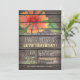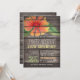 Birthday Party invitation featuring coral orange, red, yellow, green flower, floral design on rustic vintage country western, barn wood, wooden printed background with elegant, old fashioned style fonts. Perfect for country, farmhouse, farm, barnyard theme adult Birthday Parties! This cute, fun invite is great year round for spring, summer, fall, or winter birthday celebration! Rustic birthday invite for any adult or teen milestone birthday including Sweet 16, sixteen, 18th, 21st, 30th, 40th, 50th, 60th, 70th, 75th, 80th, 85th, 90th, 95, 100th birthday.