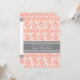 Personalised baby shower invitations in elegant and modern peach pink orange, grey and white classic floral damask pattern. Customisable with your text, contact us to request a colour change.