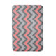 Herringbone designed Bath Mat with a chevron pattern in shades of grey and coral.