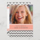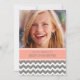 Custom Photo 16th Birthday party invitations in elegant and modern peach orange pink, charcoal grey and white fun and casual chevron zigzags stripes pattern. Add your name, photo, and party details for a unique and stylish 16th birthday party invitation.