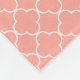Custom monogram blanket in peach orange pink, charcoal grey and white Moroccan quatrefoil lattice pattern.