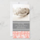 New baby girl birth announcement custom photo cards in adorable and elegant peach pink orange , grey and white classic floral damask pattern, fully customisable with your baby's photo and birth details, a great way to share the happy news of the birth of your daughter with friends and family.