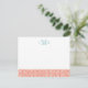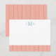 Coral Herringbone Custom Monogram Stationery Note Card