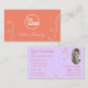 Coral Lavender Chic Ornate with Logo and Photo Business Card