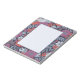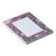 This notepad features zinnias surrounded by other flowers and leaves in shades of coral, white, magenta, and blue on a navy blue background.