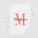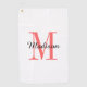 Custom printed golf towel personalised with your name and monogram initial or other custom text. Use the design tools to choose any background colour, edit fonts and colours or upload your own photos to create a unique one of a kind gift for your favourite golfer.