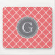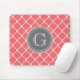 Coral Moroccan Lattice Pattern Grey Monogram Mouse Mat