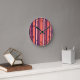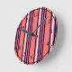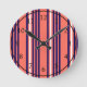 Coral, navy blue and white five stripes pattern round clock