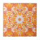 Ceramic tile in a batik pattern in shades of coral orange, cream, and beige