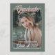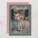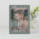 Unique and trendy congratulations graduate announcement and celebration party invitation card, with a classic seafoam grey green and blush coral orange coloured background. With room to customise or personalise with a photo, the name of the graduate, class graduation year, high school, future college or university name, and celebration party event information. Let the family, friends and neighbours know there is a happy graduate ready to conquer the world, and invite everybody to come celebrate the happy event with you!
